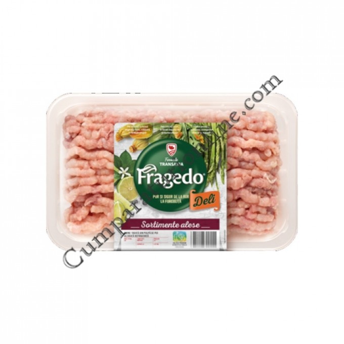 Carnea tocată din pulpă de pui cu piele Fragedo Delicat este un produs de Clasa A, ideal pentru preparatele care necesită o textură suculentă și un gust mai bogat. Datorită utilizării cărnii din pulpă și includerii pielii, acest sortiment tocat are un conținut mai mare de grăsime, care asigură frăgezimea și previne uscarea preparatelor. Este ambalată în tăviță și comercializată la preț pe kilogram.