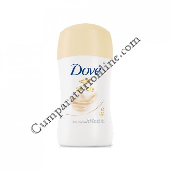 Deodorantul antiperspirant stick Dove Silk Dry ofera protectie eficienta 48h impotriva transpiratiei si ingrijijeste pielea subratului.