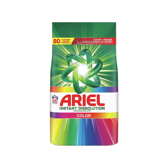Detergent automat pudră Ariel Color 5,2 kg (80 spălări) este un detergent premium în pudră, special conceput pentru rufe colorate și mixte. Protejează culorile intense, îndepărtează eficient petele dificile chiar și la temperaturi joase și oferă prospețime îndelungată. Formulă concentrată cu enzime active, oxigen activ și tehnologie de protecție a fibrelor – ideal pentru mașini automate de rufe (HE și standard), în special pentru familii medii sau utilizare frecventă.